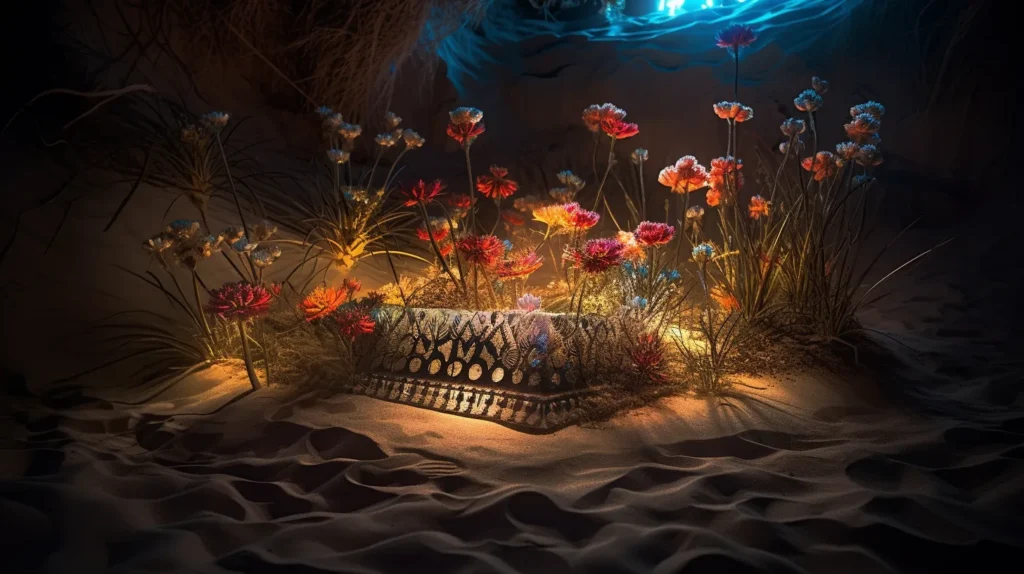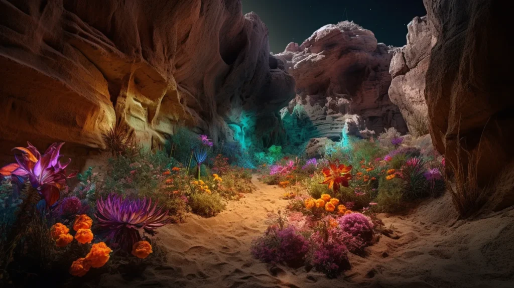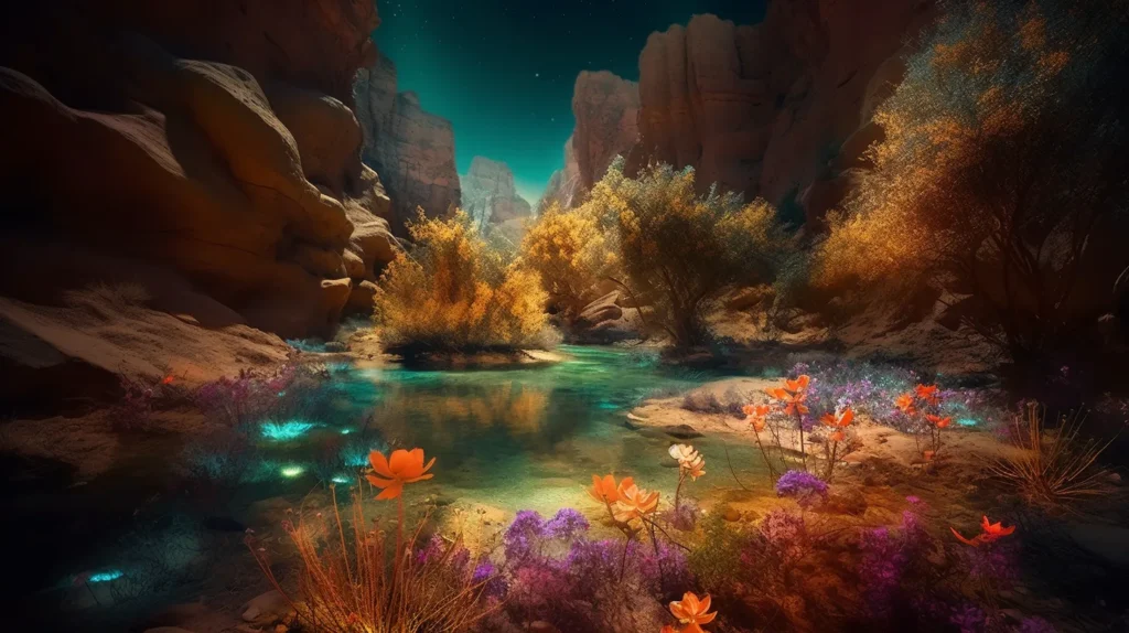 Un jour, alors qu’ils traversaient une vallée isolée, Arlen et Tarnis découvrirent une oasis cachée, où poussaient d’étranges plantes aux fleurs lumineuses. Arlen comprit qu’il s’agissait là d’un des derniers vestiges de l’œuvre d’Almira, un sanctuaire où résonnait encore l’écho de la beauté qu’elle avait créée. Inspiré par cette découverte, Arlen décida de consacrer sa vie à la préservation de ces lieux sacrés et à la restauration de l’harmonie à Seralis, guidé par les enseignements de la princesse et la force de sa propre volonté.